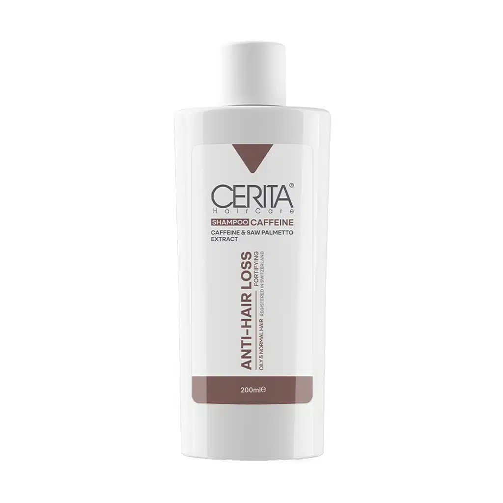 شامپو کافئین سریتا حاوی مواد موثره کافئین، ساوپالمیتو، پروتئین جوانه گندم و عصاره های گیاهی (رزماری) است که باعث تقویت مو، کنترل ریزش مو و کمک به رویش و رشد مجدد مو می گردد.